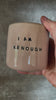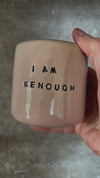 Handmade pink ceramic stoneware mug with words: I AM KENOUGH - a phrase from a popular movie about pink girl-doll.